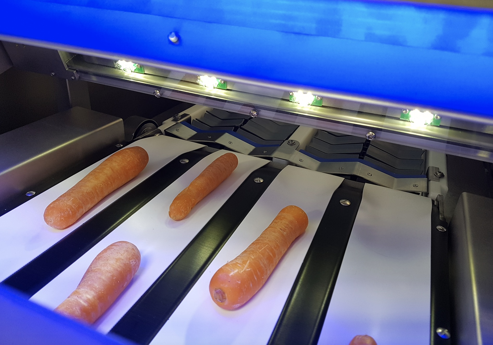 “We are just about to release an X-ray-based machine where multiple x-ray scans per product permit us to identify and reject items with internal defects. Another machine that we will present soon makes use of hyperspectral imaging to acquire a chemical composition of the products to assess internal conditions such as moisture, sugar, oil, and starch levels,” announced Thomas Heinicke, head of sales and marketing development . “Our Celox-C-UHD (pictured below in action – carrots reach the Spinaflex™ section as they leave the camera section) is the only machine on the market which can simultaneously grade products in both size, shape and quality — and then deliver the products in up to 16 different categories at a maximum capacity of 120,000 carrots per hour. It is a sorter in constant development, with two annual software releases. We strive to be compatible with older models and distribute the releases over the Internet to existing machines — downloadable and installable directly from the machine’s user interface. Apart from new features and functions, some of the focal points for the last couple of releases have been robustness, stability, user experience, and machine maintenance.”