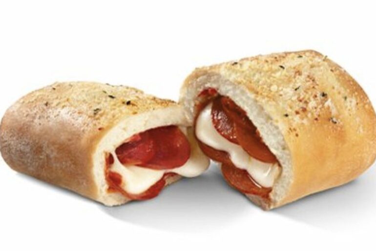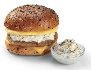 The new pizza offering (pictured above) is loaded with rich tomato sauce, spicy sliced pepperoni and mozzarella cheese, wrapped in a soft, seasoned dough pocket. The bagel breakfast sandwich (seen below) features sausage, egg and cheese made on a fluffy potato bun topped with Everything Bagel Seasoning. It comes with an Everything Bagel Seasoning Cream Cheese spread.