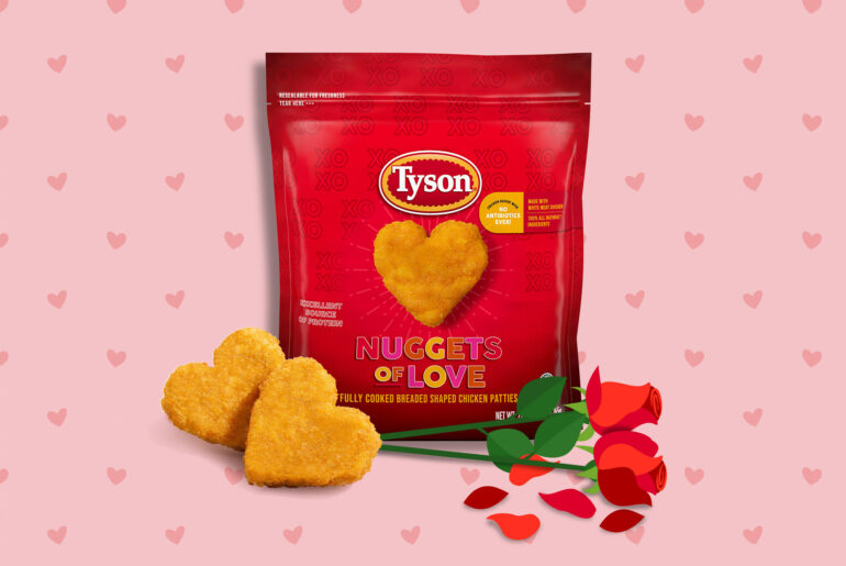 “If the way to one’s heart is really through the stomach, then Nuggets of Love are must-have this year. There’s no better way to celebrate the season of love than with a heart-shaped chicken nugget,” said Colleen Hall, the Tyson brand’s senior director of marketing. “That’s why we’re making it easier than ever for fans to get their hands on these heart-shaped nuggets with expanded distribution nationwide.”