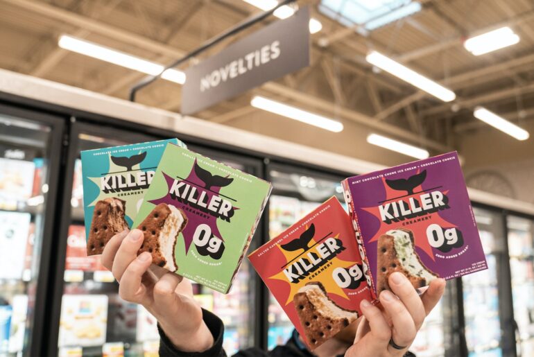 Boise, Idaho-based Killer Creamery has announced the launch of all four of its sugar-free ice cream sandwiches – Chocolate, Vanilla, Caramel and Mint Chip – into 2000+ retail locations owned by Albertsons Companies, including Vons, Safeway, Acme and Jewel-Osco stores in the USA. The increase in distribution comes after the company posted impressive sales in a number of test markets last summer.