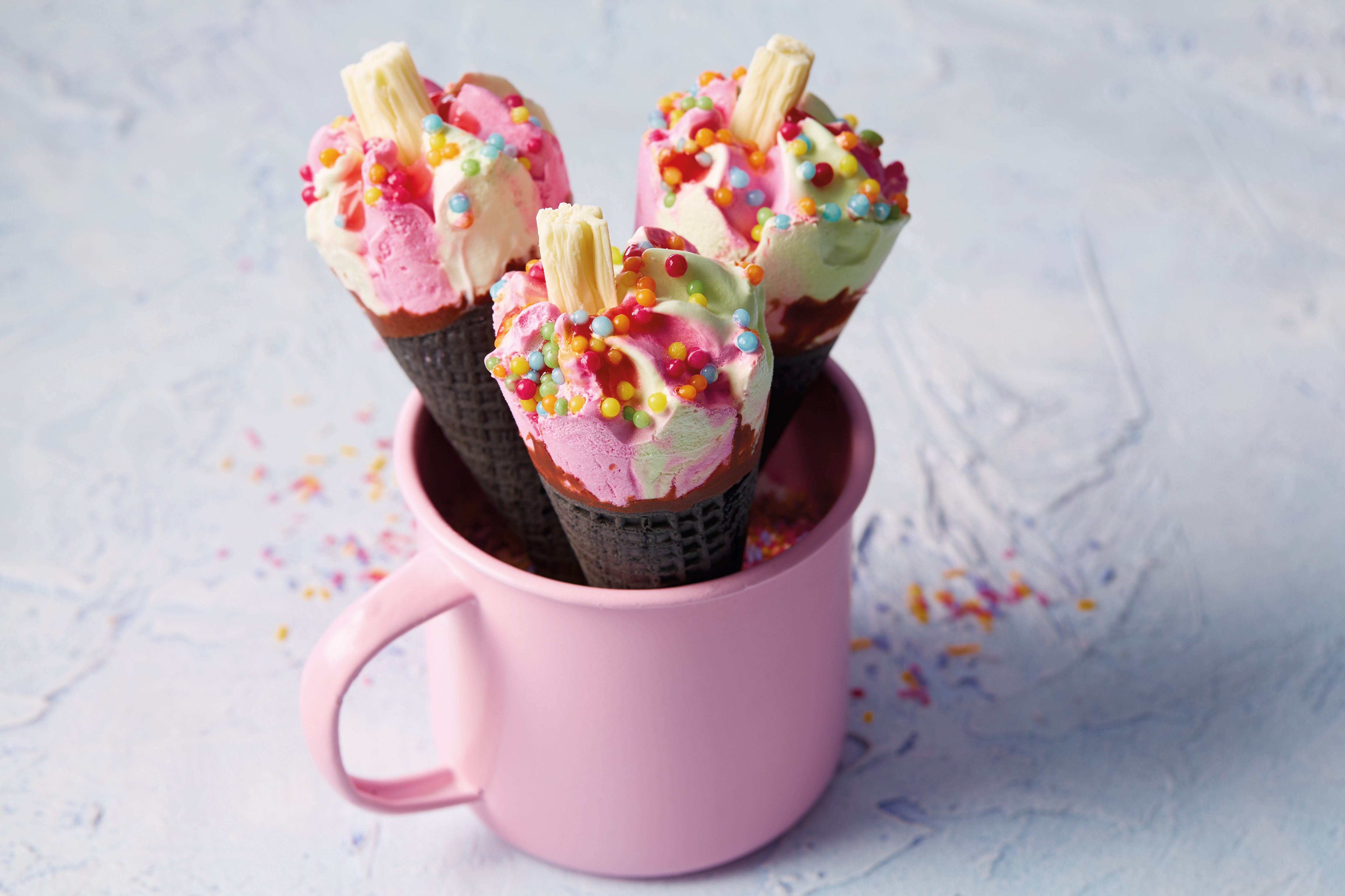 Positioned as the ultimate ‘Frozen’ treat, Aldi’s Gianni’s Unicorn Ice Cream Cones (£1.39, pack of four), are sweet treats featuring chocolate wafer filled with a vanilla and strawberry ice cream and white chocolate finger, layered with strawberry-flavored rice krispies and lashings of strawberry sauce.