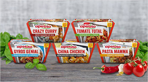 The new Lunchbox high convenience meals from Rheine, Germany-based apetito consist of five popular dishes that can be ready to eat after eight minutes of zapping in a microwave oven. They’re good for lunch, dinner, after school or even lunch at the office. All are 350 grams and suggested for retail at 2.49 euros.