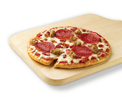 - Stone Fired Pepperoni Pizza, featuring shredded cheeses and a zesty garlic sauce in addition to pepperoni.