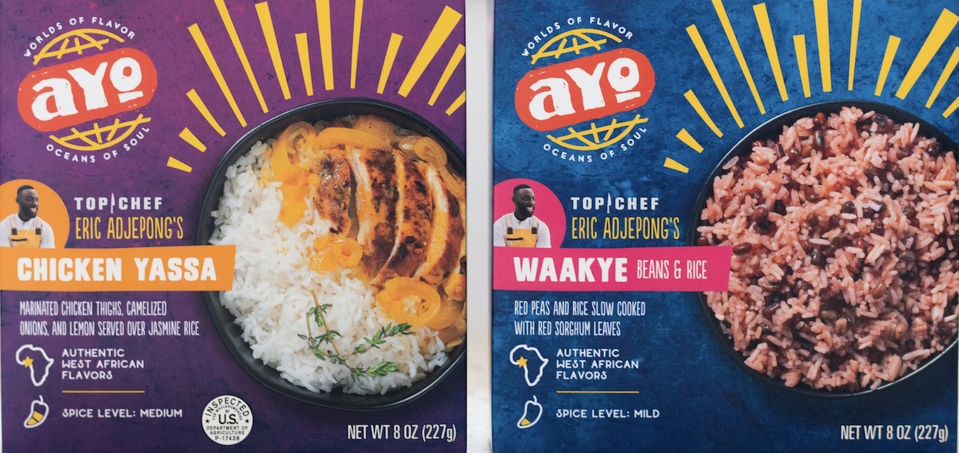 Four AYO Foods brand offerings of authentic West African-inspired cuisine have been listed at Kroger supermarkets and the chain’s other grocery stores across the United States. Among the frozen ready meals and side dishes now stocked are Jollof Rice and Puff Puff, as well as Chicken Yassa and Waakye, which were recently launched in partnership with Bravo TV Top Chef Eric Adjepong (pictured above).
