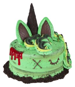 Baskin-Robbins’ iconic unicorn cake is getting “all ghouled up” as a Zombie Unicorn Cake for the spookiest season of the year. The frozen specialty product is decorated with a crushed Oreo coated sugar cone horn, gooey dripping “blood” and an Oreo “dirt” speckled base.