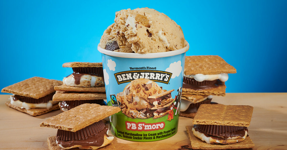 Ben & Jerry’s latest innovative flavors distributed in pint containers include the PB S’more, a riff on the classic campfire dessert, and Impretzively Fudged, a showcase of chocolate and pretzel, are presented as “the perfect salty and sweet pair inspired by chocolate bark.”