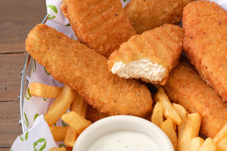 Crafted to look, cook and taste like traditional animal-based chicken tenders, they boast 14 grams of protein per serving and have 40% less saturated fat than typical chicken tenders sold at foodservice outlets. Made from peas and faba beans, the “better for you” option contains no GMOs, antibiotics, hormones or cholesterol.