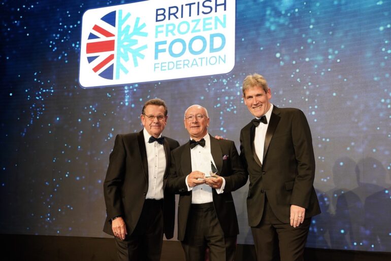 In total 19 people and teams were recognized across 11 categories, with Nigel Broadhurst, Iceland’s former joint managing director, receiving the Lifetime Achievement Award (seen in the center of above photo receiving congratulations from BFFF CEO Richard Harrow at left and BFFF President Ian Stone at right).