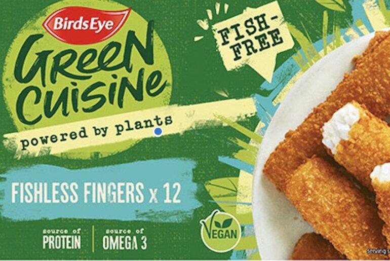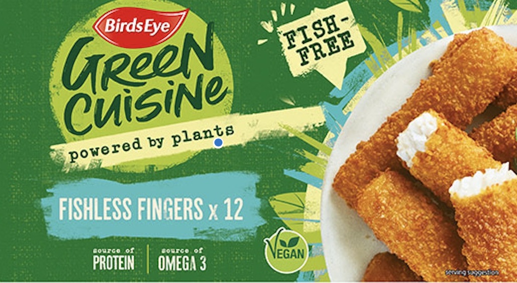 The Birds Eye frozen food brand in the United Kingdom is eying the faux fish market with the launch of Fishless Fingers 12-packs under its Green Cuisine banner. Debuting in Sainsbury’s stores in late June, the launch follows the success of previous Green Cuisine retail products intended to recreate classic Birds Eye offerings, such as Chicken-free pieces, which now contributes to 38% of sales according to Nielsen Scantrack.