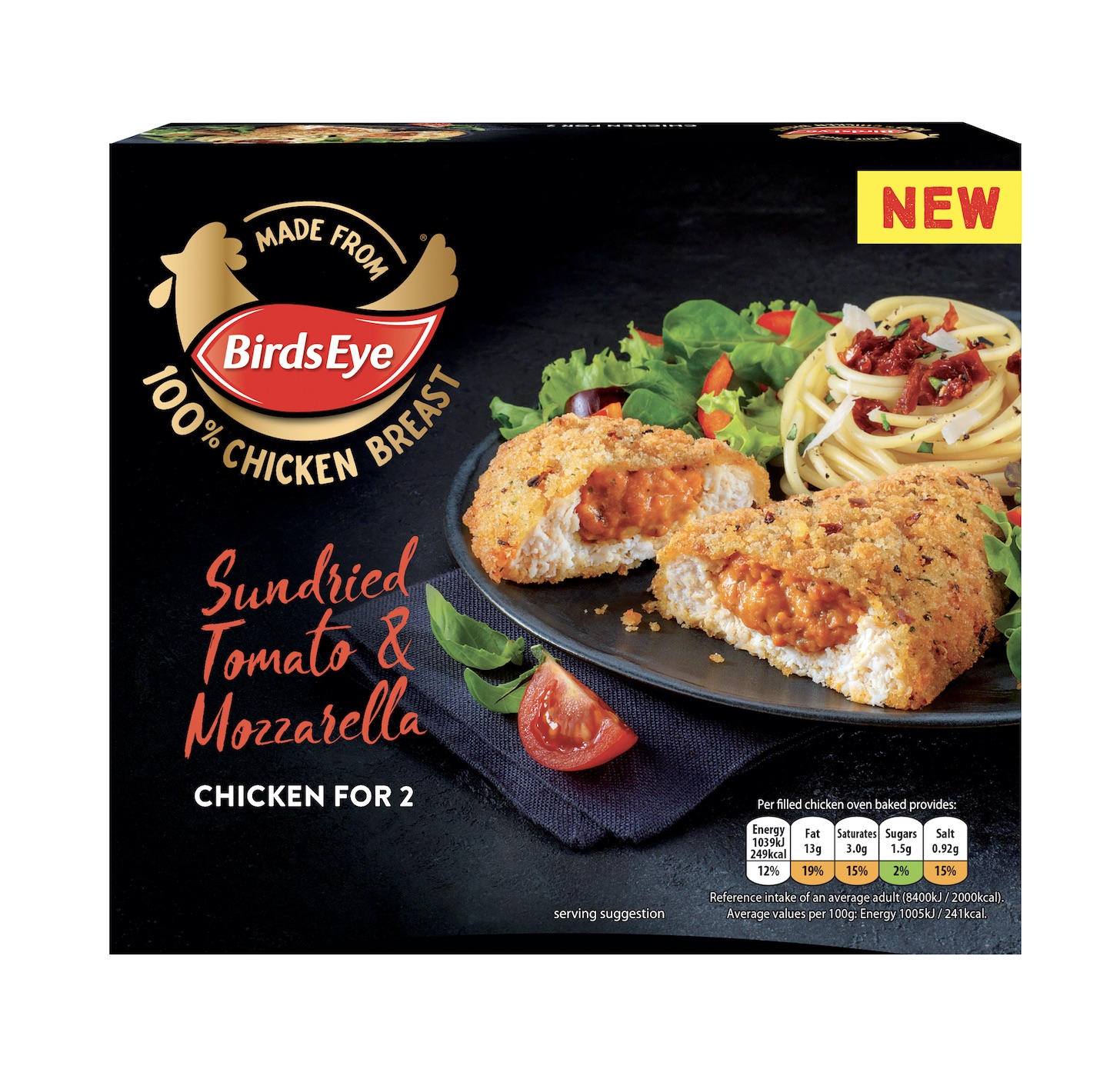 Birds Eye in the United Kingdom is tapping into popular world flavors with the launch of its new range of chicken products. The innovation is a twist on traditional filled chicken dishes, with the first two products in the range inspired by the tastes of Italy and Mexico. The Italian-style variant features a soft and creamy sauce made from sundried tomato and mozzarella on the inside, with red pepper and herb seasoned crumb coating the chicken. The Mexican-inspired variant encompasses a light mild salsa sauce with a crunchy coating made with tortilla chips and seasoning. Both the Sundried Tomato & Mozzarella and Mild Salsa & Tortillas SKUs, priced at £3 each, will be available at Sainsbury’s stores beginning September 19.
