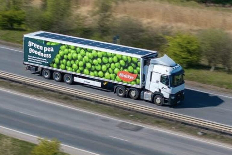 Birds Eye frozen food products will soon be rolling out in two new solar-powered refrigerated trailers as thousands of tons are set to be transported each year in a partnership with European shipping and logistics firm DFDS and British sustainable-powered refrigeration specialists Sunswap.