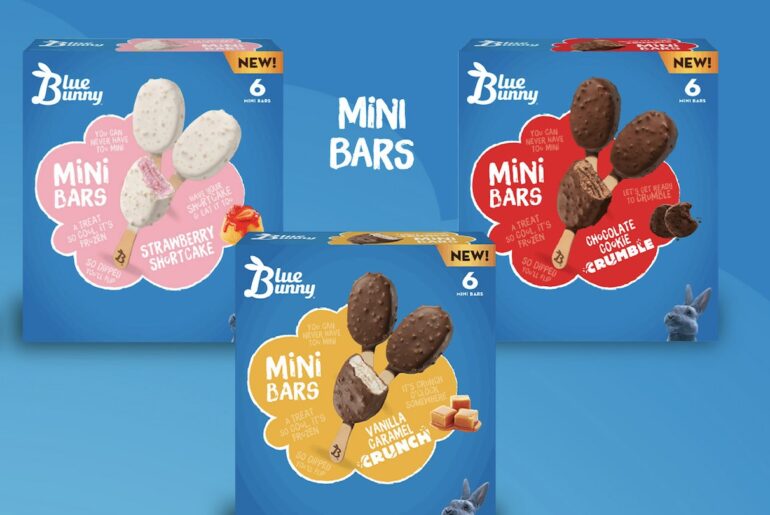 Blue Bunny is adding a line extension to its popular minis range available in supermarket and grocery store freezer cases across the United States. Joining the brand’s Mini Swirls treats, new Mini Bars are frozen dairy dessert snacks dipped in a cookie crunch coating with smooth swirls of additional flavor inside. Flavors include Vanilla Caramel Crunch, Chocolate Cookie Crumble and Strawberry Shortcake.