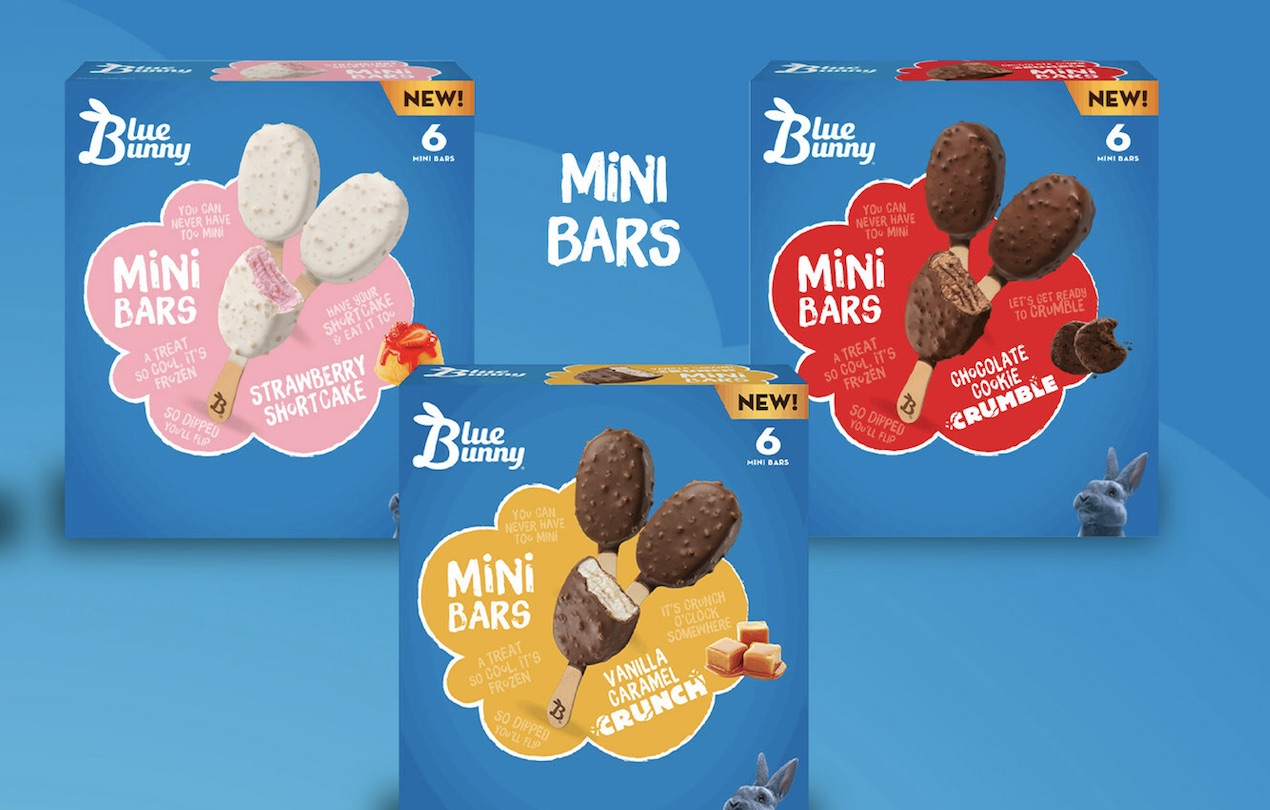 “Following the success of Mini Swirls, we knew we wanted to grow our ‘Mini’ platform with a new product lineup that offered the same snackable indulgence as the cones,” said Jeremy Hrynewycz, brand marketing director of Le Mars, Iowa-headquartered Wells Enterprises’ Blue Bunny brand. “We are proud to launch Mini Bars as a new way to bring joy to consumers’ everyday lives with the perfect frozen treat that’s mini in size, but mighty in crunch.”
