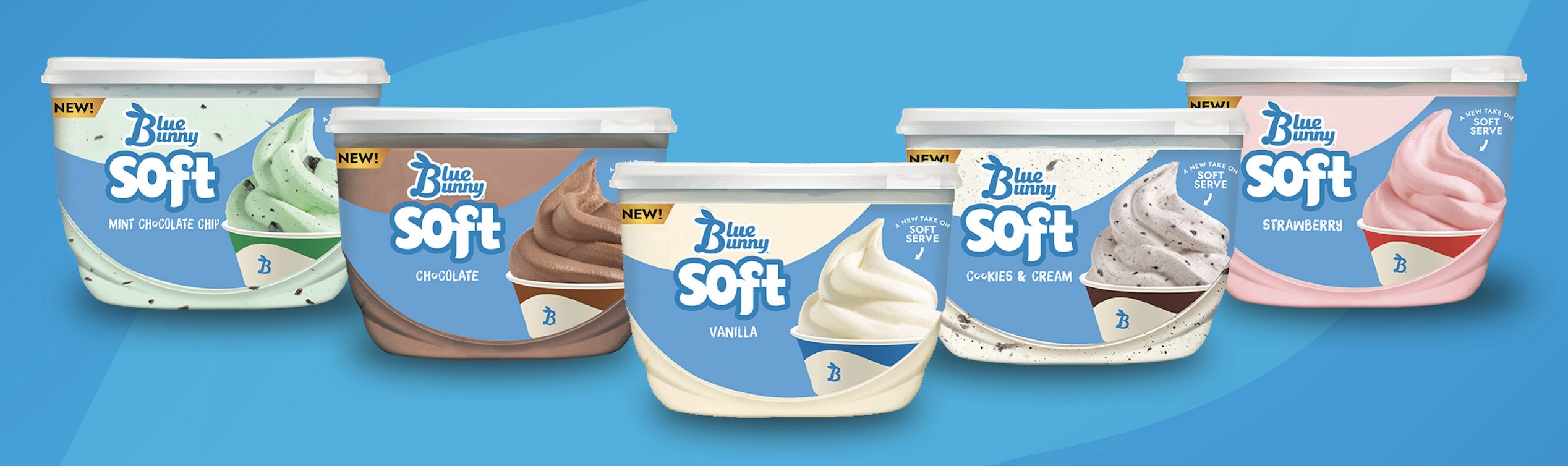 Blue Bunny is also unveiling a new take on soft serve with Soft scoopables, as well as two new Twist Cones flavors, making it easier to indulge in the classic soft serve experience at home. Soft scoopables, which are easy to scoop and soft straight from the freezer, are offered in Vanilla, Chocolate, Cookies & Cream, Strawberry and Mint Chocolate Chip flavors. The new Twist Cones options – Salted Caramel Chocolate and Mint Chocolate – will continue to build out the Twist Cones platform with soft frozen dairy dessert twisted throughout with ribbons of fudge or caramel, along with a bonus chocolaty bite at the bottom.