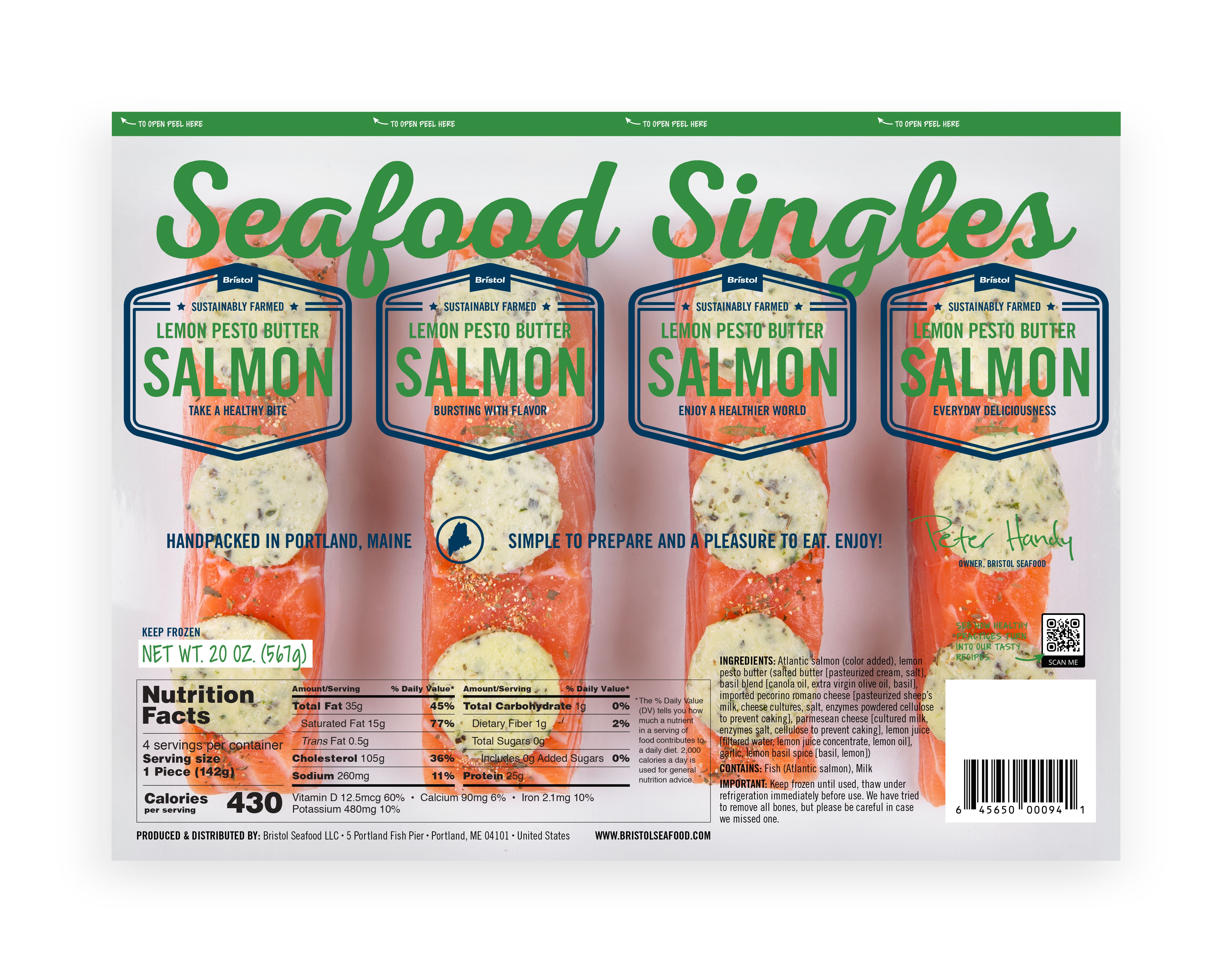 Bristol Seafood has added Seafood Singles to its frozen retail line. The new offering features quality fish packed in perforated, easy-peel packs with a QR code connecting the consumer to recipes and sustainability information. The range includes center-cut Atlantic salmon portions in lemon and pesto butter or ginger and garlic butter.
