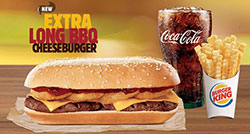 Burger King Worldwide, Inc. is stretching its summer menu with the introduction of the Extra Long BBQ Cheeseburger. Featuring a fire-grilled and sweet barbecue flavor, the product consists of two 100% beef burger patties layered side by side on a toasted hoagie bun and topped with American cheese, onion rings and barbecue sauce.