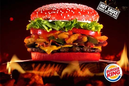 A 30-second video accompanying the launch has been released. Produced in the style of a cinema-like trailer promoting an epic movie sequel, it leads off with the announcement: “At a Burger King Restaurant Near You.” The clip then erupts with molten lava flowing from a volcano, followed by a flame-grilling scene and a voice over proclaiming: “No matter how intense it gets, no matter how hot the situation becomes, the only way to handle the heat is to embrace it.”
