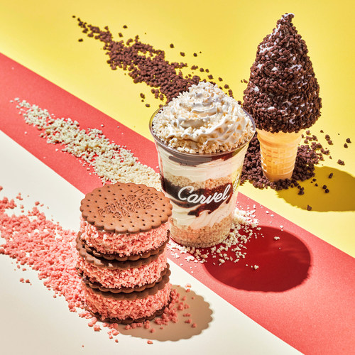 The new Strawberry Crunchies treats lineup, along with treats featuring the classic Chocolate and Vanilla Crunchies, are available at Carvel shoppes and food delivery platforms. Starting prices vary by location.