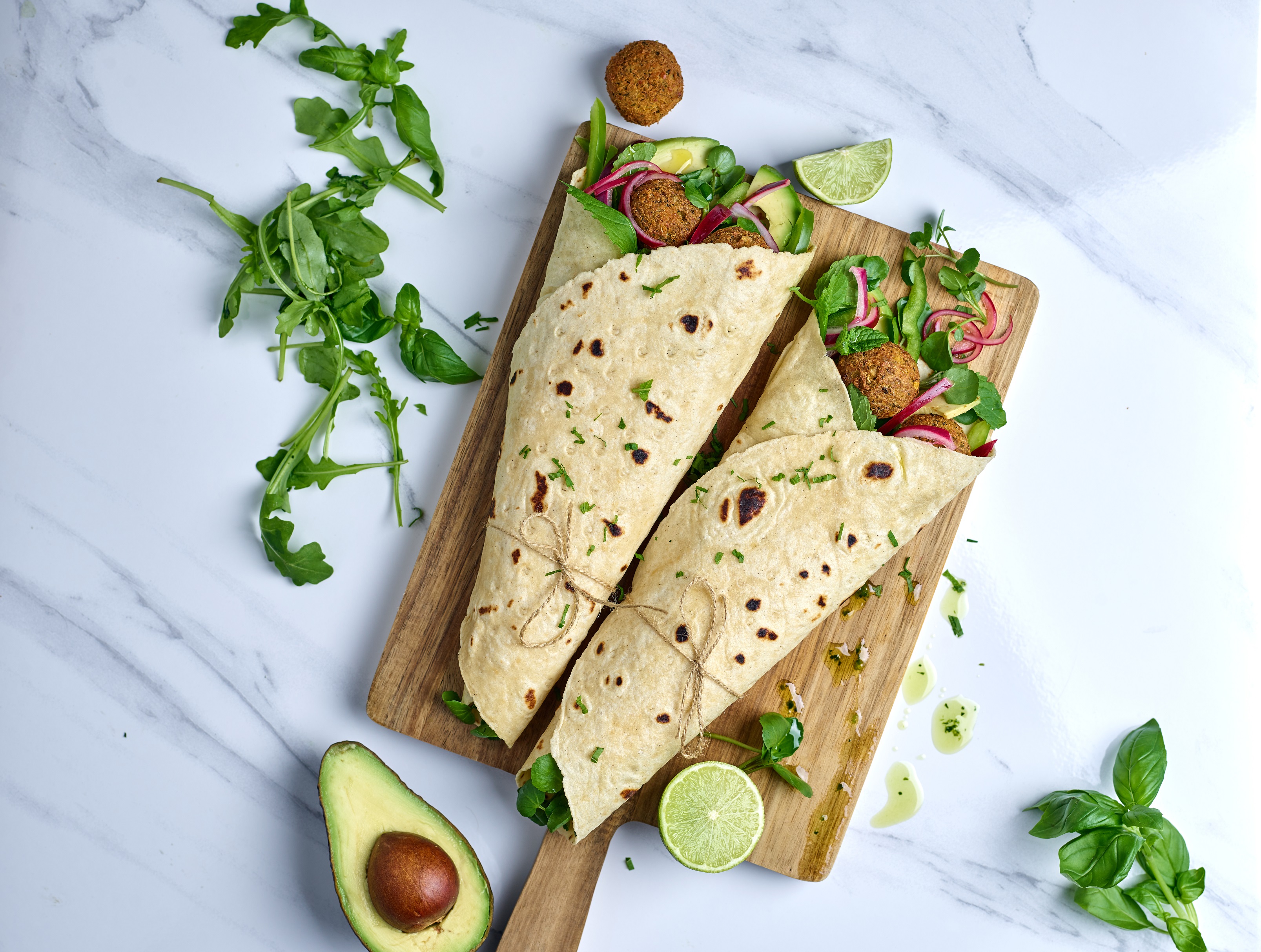 Suitable for vegans, vegetarians and coeliacs, the 10.5” high-in-fiber KaterBake wrap is part of an expanding range of free-from products supplied by the Northamptonshire, England-based frozen food distributor to the foodservice sector.