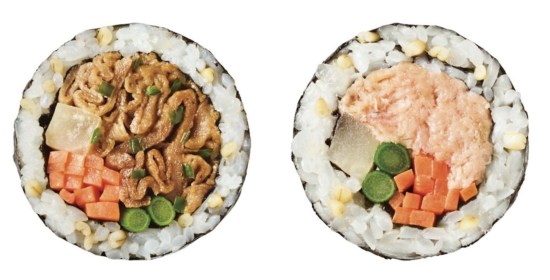 Unlike Japanese sushi, the rice is seasoned with salt and sesame oil, not vinegar. By freezing the kimbap, Unlimeat was able to prevent the seaweed from becoming soggy. It also allows for the kimbap to be stored for 12 months, and can be prepared and ready to eat after just three minutes of microwave oven heating.