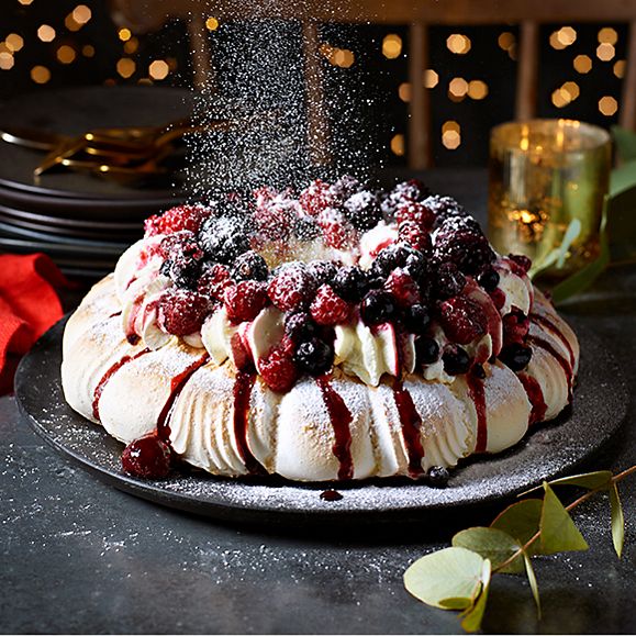 To finish there’s torched winter berry pavlova, featuring a torched meringue wreath topped with cream, blackberries, raspberries and blackcurrants drenched in a hand-piped winter fruits sauce.