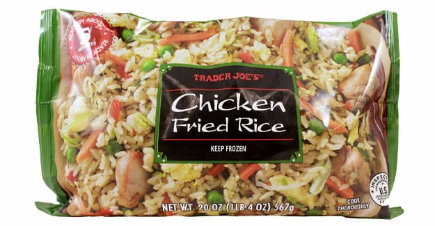 • 20-oz. plastic bag packages containing frozen Trader Joe’s Chicken Fried Rice featuring stir-fried rice, vegetables, seasoned dark chicken meat and eggs. The Best By dates are 9/8/2026 through 11/17/2026.
