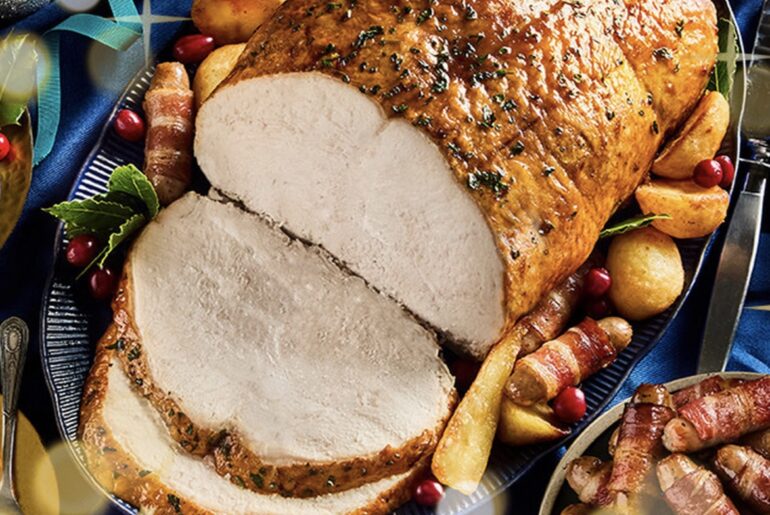 The frozen Christmas dinner is priced at £18.48 and includes a 2.6kg turkey, a trio of broccoli, cauliflower and carrots, 12 pigs in blankets, roast potatoes, and 12 Yorkshire puddings. In comparison, a fresh Christmas dinner costs £41.46, featuring a 2.3kg turkey, cauliflower, broccoli, carrots, 12 Yorkshire puddings, potatoes, and 12 pigs in blankets.