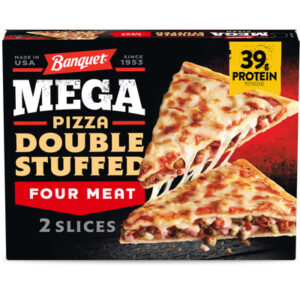 • Banquet Mega Pizzas: New Mega Double Stuffed Pizza under the Banquet label will not disappoint big appetites. Three flavors on offer are Three Cheese, Pepperoni and Four Meat.