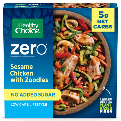 • Healthy Choice Zero: These keto-friendly meals contain less than 10g net carbohydrates and no added sugar. Smart carb swaps like zoodles and riced cauliflower are part of a flavorful collection of meals that includes Tomato Basil Chicken, Carne Asada, Sesame Chicken with Zoodles and Verde Chicken.