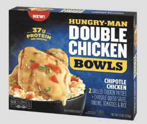 • Hungry Man Double Chicken and Double Meat Bowls: Designed to satisfy a robust appetite, these new 15 oz. bowls are protein-packed with two patties of Chipotle Chicken, Boneless Pork with BBQ Sauce, or Smothered Salisbury Steak.