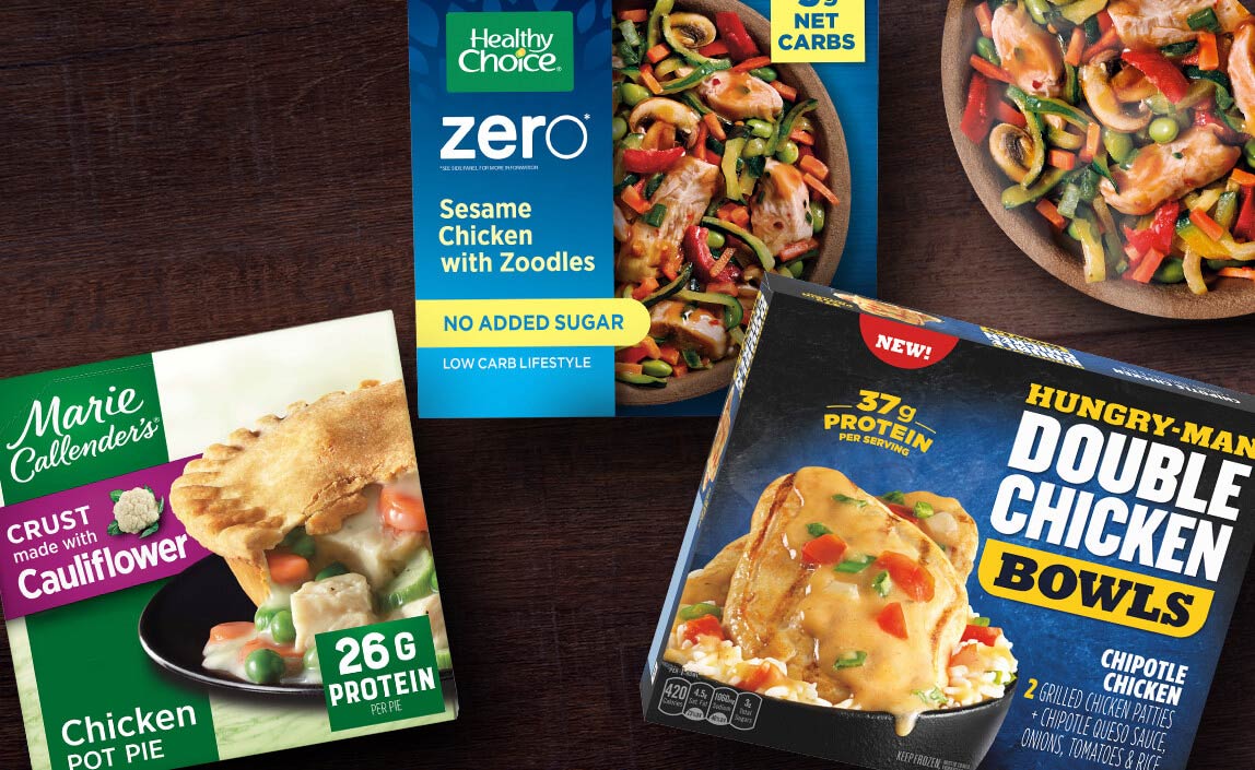 Among the company’s frozen food brands are Healthy Choice, Birds Eye, Alexia, Blake’s, Gardein, Frontera, Bertolli, P.F. Chang’s, Hungry Man, Banquet and Marie Callender’s.