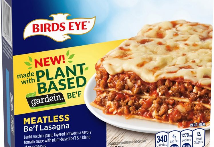 - Birds Eye Meatless Lasagna with Gardein Plant-Based Protein: produced with Gardein B’ef and pasta made from vegetables.