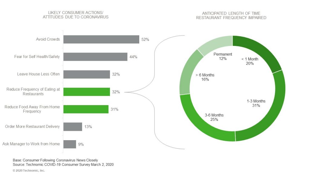 Chicago-headquartered global foodservice research and market forecasting company Technomic has developed a whitepaper to provide some understanding to foodservice professionals on the consumer view of Covid-19 and its potential impact on the foodservice industry. Original research was conducted with 1,000 consumers from February 28 to March 2 to best understand their behaviors, attitudes and possible reactions to a more widespread outbreak of Covid-19. It should be noted that there are certainly other far-reaching potential effects, such as those relating to supply chain and employee health, but this discussion will focus on consumer implications.