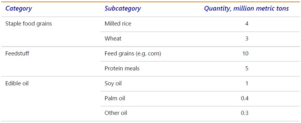As for grains, potential savings in food grains will be negligible at 7 million metric tons, or less than 3% of annual consumption. Besides, 10 million metric tons (5%) of China’s feed grain use, mostly corn, could also be spared. As the PRC’s corn is experiencing a big deficit and low inventories, the savings could help narrow the supply-demand gap and lower future import needs to some extent.