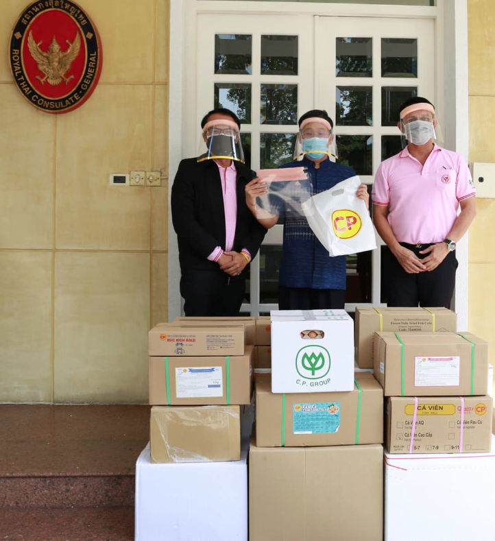 Meanwhile, CPF announced on March 27 that Apirat Sugondhabhirom, consul-general of Thailand in Ho Chi Minh City, Vietnam, received a variety of food products from CP Vietnam, represented by Chinoros Benjachavakul, vice president for human resources, and Waehassan Waehayee, assistant vice president (pictured in below). The company also donated safety face shield masks to the officials in charge of repatriating Thai citizens returning to Thailand on flights from Ho Chi Minh International Airport.