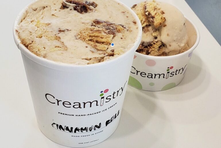 Creamistry, a Fullerton, California-based franchise company that specializes in customizable made-to-order liquid nitrogen ice cream and other frozen treats, has launched a new Cinnamon Roll ice cream made with real cinnamon rolls and a brown sugar cinnamon ice cream base. It is now available for a limited time at Creamistry locations in the United States, which beyond the Golden State include shops in Arizona, Texas, Louisiana, and Georgia.