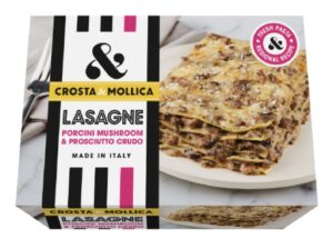 Crosta & Mollica is adding two new SKUs to its oven-ready meal range in the United Kingdom with the launch of Lasagne Porcini Mushroom & Prosciutto Ham and Gnocchi Tomato, Basil & Buffalo Mozzarella. Both frozen products, distributed in recyclable packaging, are available exclusively online through Ocado.