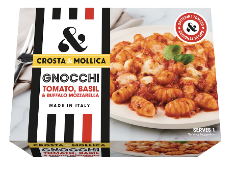 Gnocchi Tomato, Basil & Buffalo Mozzarella offering is traditionally finished with deep fork grooves to capture the sauce, made with datterini tomatoes, basil and cow’s milk mozzarella, and topped with buffalo mozzarella. The single-serve dish retails for £5.
