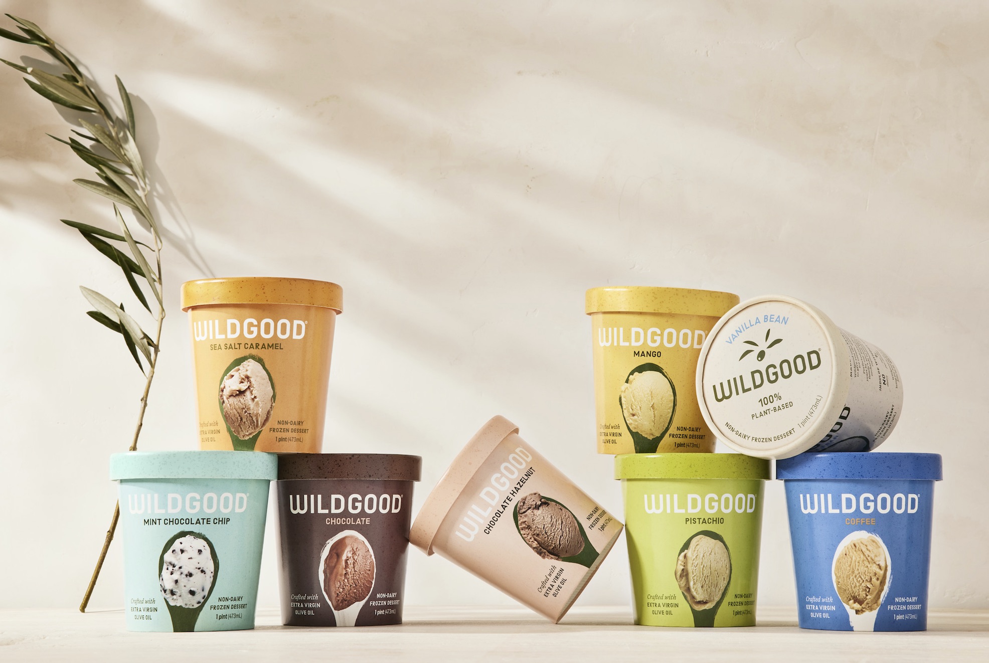 Wildgood uses no alternative milks – just extra virgin olive oil, and a handful of easy-to-pronounce plant-based ingredients. As a cornerstone of the Mediterranean diet, olive oil is a highly versatile food ingredient. After harvesting and pressing in Greece, the super-premium oil is exported to the United States. There it is blended with filtered water, plant-based proteins and fibers and ingredients such as organic coffee, fresh pistachios and Alphonso mango to create the finished product. The result is a light, simple, flavorful and creamy non-dairy frozen dessert.