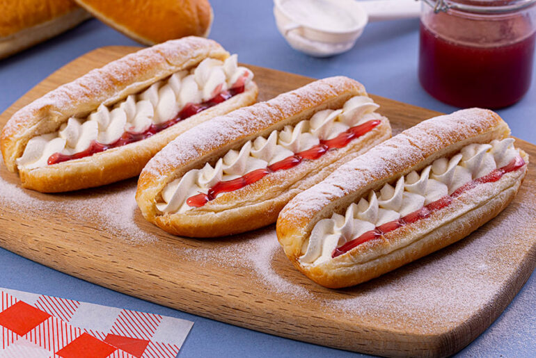 The new format takes the traditional finger bun onto a different level, as the Finger Donut is for splitting and filling with jam and cream to create classic British teatime cakes. Distribution is in packs of 36 pieces to a case.