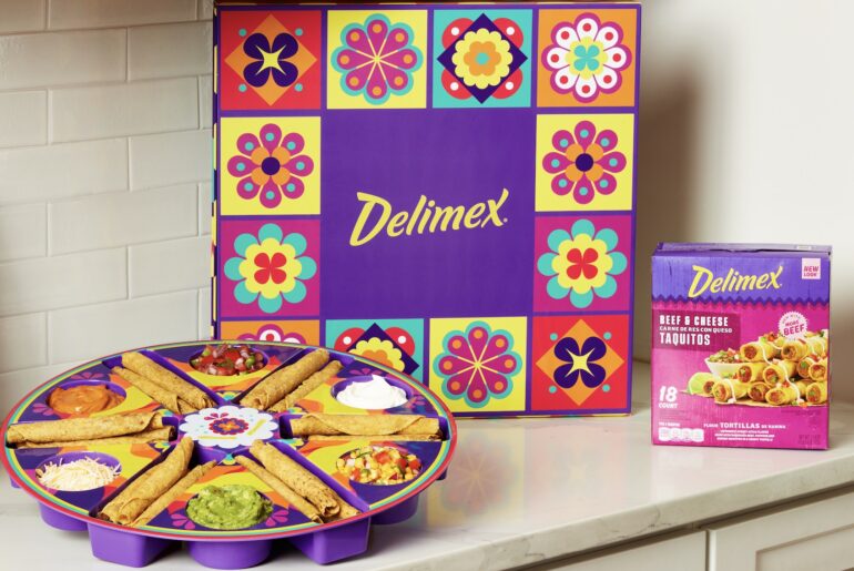 Delimex, the frozen taquito and taco product brand marketed by Kraft Heinz in the USA, has unveiled a first-of-its-kind taquitos serving platter that allows hosts to serve two dozen taquitos and six dips together on one large tray. The platter features artwork from Mexican artist and muralist Alejandra Ballesteros.