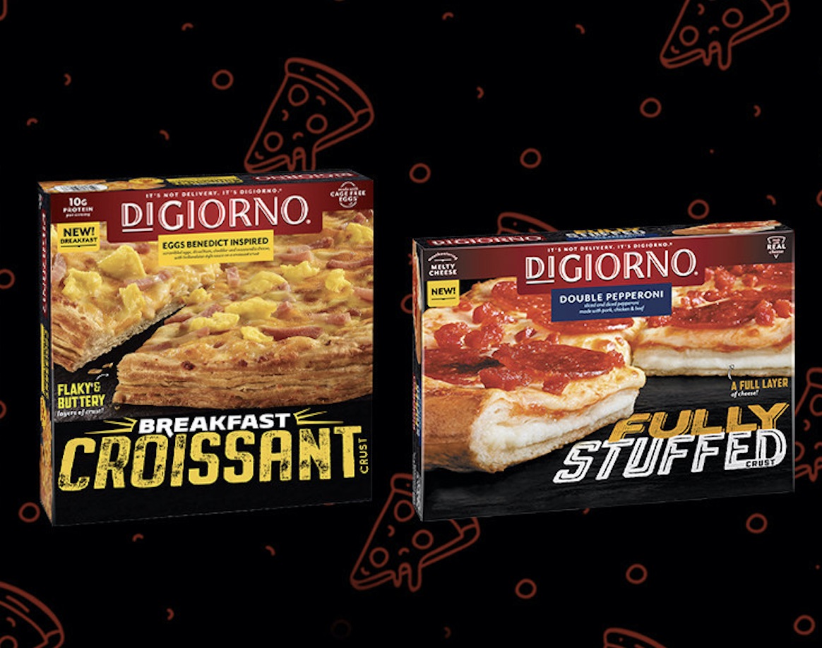 DiGiorno, which was founded as a pasta and sauces company in 1991, has been selling frozen pizza throughout North America and beyond since 1995. Promoted as “pizzeria quality,” the wide range of products features toppings including cheese, pepperoni, sausage, beef, chicken, bacon, supreme, veggie, spinach and more. Rising Crust, Stuffed Crust, Personal and Breakfast Croissant are among many varieties offered in retail stores.