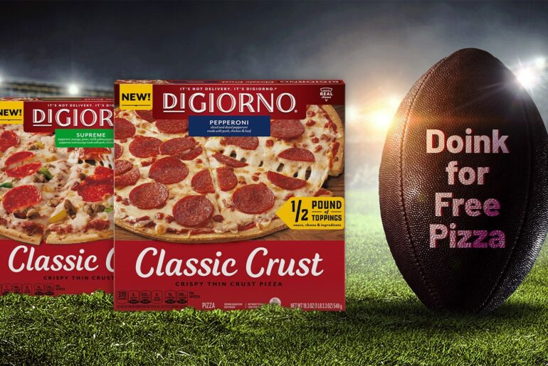 For the second year in a row, fans can enter for a chance to win free DiGiorno pizza if a kick hits an upright or the crossbar (causing a ‘Doink’) at any point during the game on February 11.