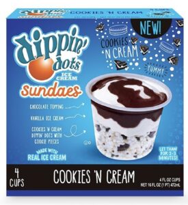“Our customers told us that they are craving innovation that allows them to enjoy the Dippin’ Dots brand in their own home,” added Lynwood Mallard, chief marketing officer. “We listened and are delighted to introduce the new Dippin’ Dots Ice Cream Sundaes.”