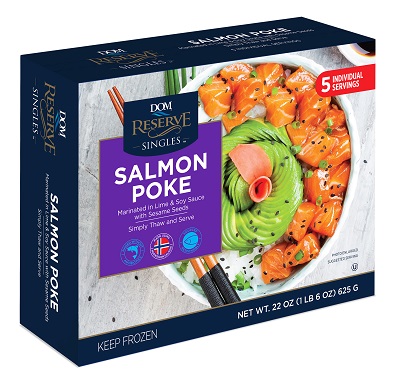 DOM International Limited of Toronto, Ontario, Canada won the “Best New Retail” award in the 2022 Seafood Excellence competition at the Boston Seafood Show on March 13 for its frozen Reserve Singles Salmon Poke marinated in lime and soy sauce.