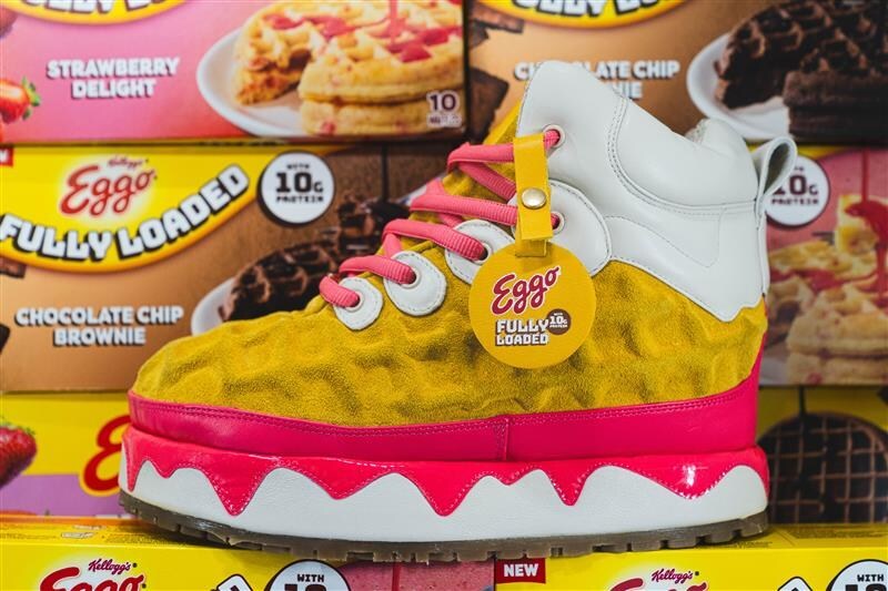In a tribute to the historic waffle-sneaker connection and its influence on waffle-grid-patterned shoe soles, the brand is teaming up with sneakerhead legend and custom creator Dominic “The Surgeon” Ciambrone and SRGN to create the first-of-its-kind Eggo Fully Loaded Kicks.