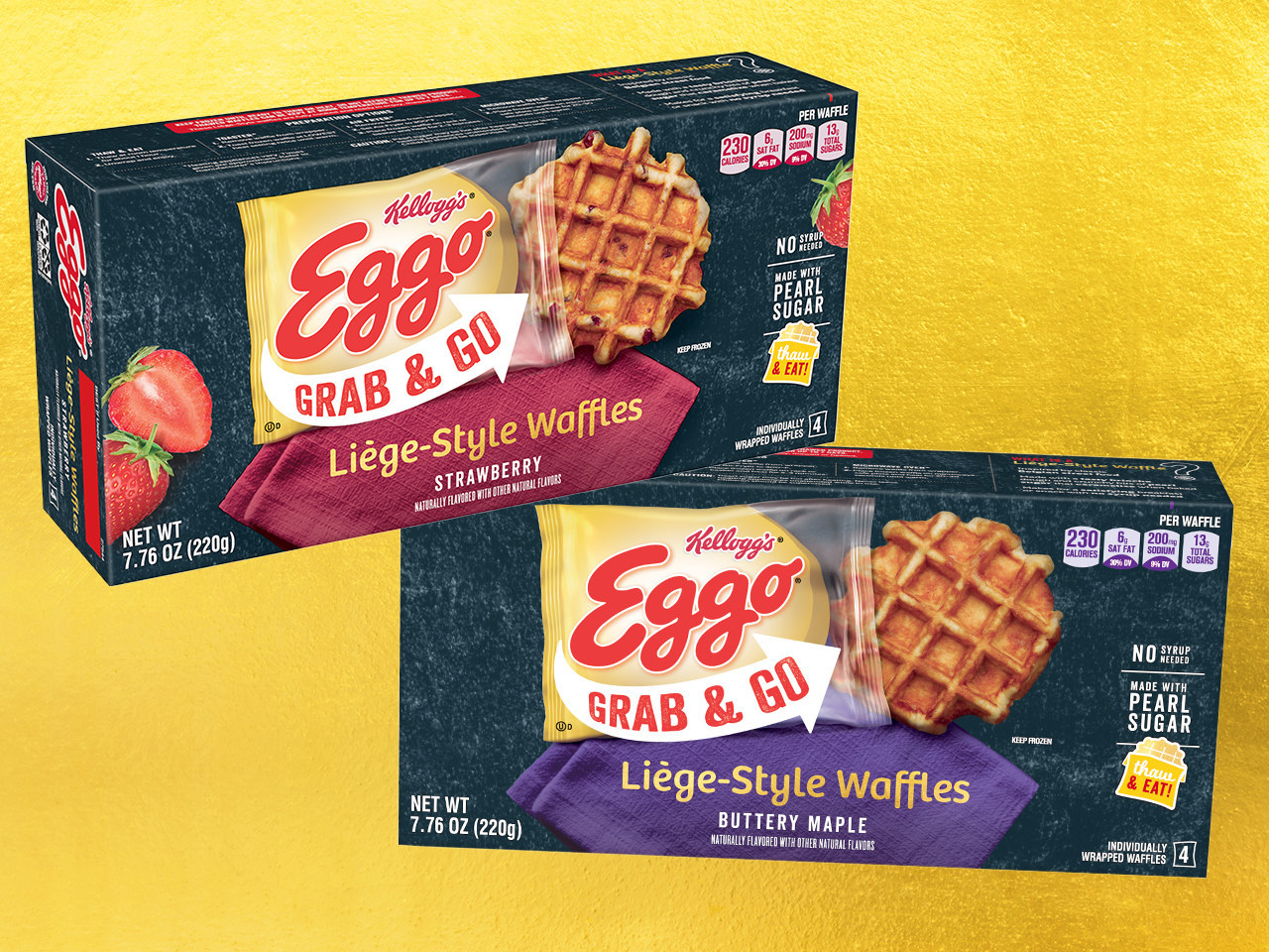 Eggo Grab & Go Waffles are individually wrapped and can be eaten at room temperature – they thaw in under an hour upon removal from one’s home freezer – or can be consumed warm straight from the toaster. The Liege-style waffles are infused with maple flavor and other natural flavors, so no syrup or toppings are needed, making them a convenient, mess-free breakfast option for on-the-go consumers.
