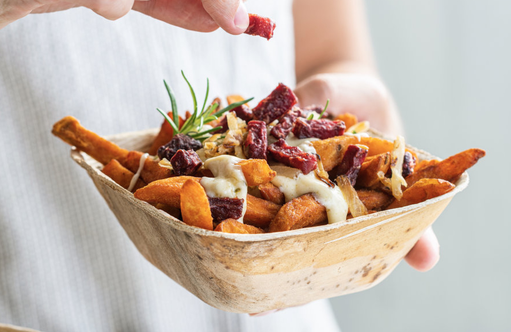 Meanwhile, pre-fried crispy Beet Bacon Crispy Beetroot lardons are gluten-free and distributed in attractive 1 kg bags made of recyclable LD-PE stamped with the European Vegetarian Union V Label. The smokey flavored product is an innovative pizza topping and a crispy addition to salads with goat cheese and apples, as well as enhancement for pasta dishes.