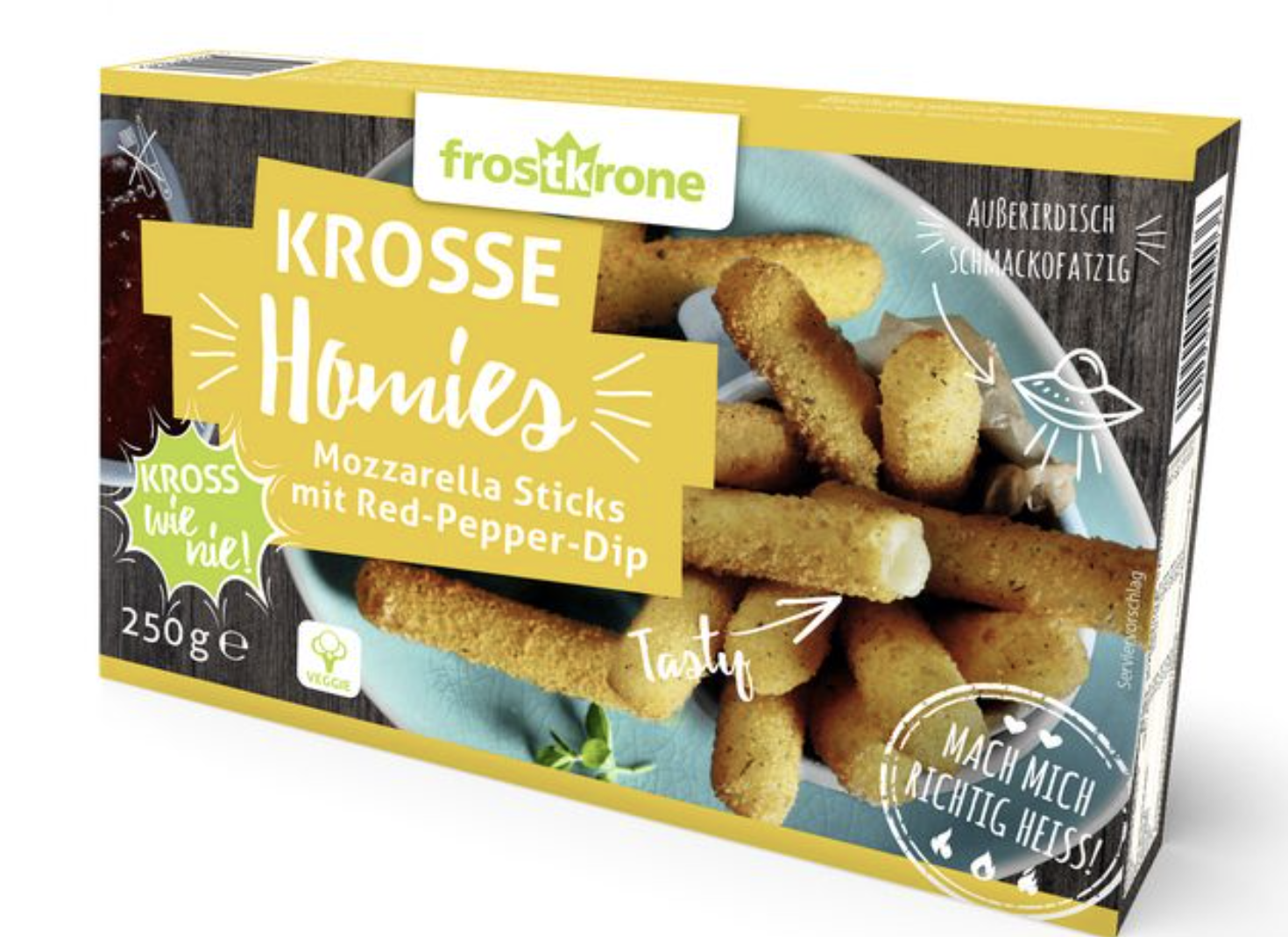 Frostkrone, the Rietberg, Germany-headquartered frozen snack and finger food producer, has crisped up its three top selling products. Mozzarella Sticks, Chilli Cheese Nuggets and Jalapeños Cream Cheese, distributed in 250g retail packs, now feature extra crunchy coating.
