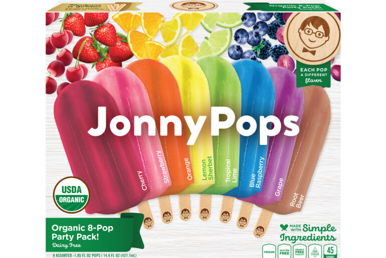JonnyPops has announced its third launch of the year with the debut of Organic 8-Pop Party Packs featuring eight different water ice pop flavors including Cherry, Strawberry, Orange, Lemon Sherbet, Tropical Lime, Blue Raspberry, Grape and Root Beer. All offerings are organic, vegan, contain no artificial dyes and flavors, are free from the Big 9 US Allergens, and made in a peanut-free facility.